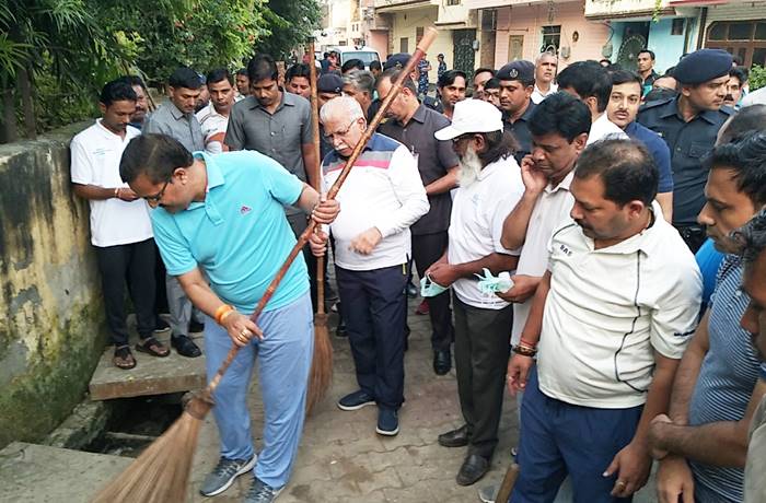 वही यह तस्वीरें कल की मुख्यमंत्री खट्टर के करनाल दौरे की है जिसमें कल सुबह सुबह शहर में स्वच्छता कार्यक्रम के तहत मुख्यमंत्री हाथ मे झाड़ू लेकर सफाई करते नजर आए उनके साथ साथ थे उनके OSD अमरेन्द्र सिंह ! मुख्यमंत्री ने झाड़ू से कूड़े को एक जगह इख्ठा किया और OSD साहब ने उसे कस्सी से इख्ठा कर रेहड़ी में गेरते हुए नजर आए ,देखें कुछ तस्वीरें