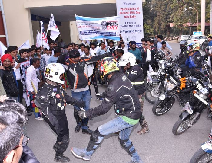राष्ट्रीय डेरी अनुसंधान संस्थान के निदेशक डा. आरआरबी सिंह की अध्यक्षता में सभी वैज्ञानिकों एवं विद्यार्थियों ने ढोल नगाड़ों के साथ बाइक रैली का स्वागत किया। डा. आरआरबी सिंह ने कहा कि डा. वरगीस कुरियन को भारत के मिल्कमैन रूप जाना जाता है। 26 नवंबर को उनकी याद में राष्ट्रीय दुग्ध दिवस मनाया जाता है। उन्हीं के प्रयासों की बदौलत आज हिन्दुस्तान 165 मिमियन टन दूध उत्पादन करके विश्व में प्रथम स्थान पर है। डा. कुरियन ने दुग्ध सहकारिता क्षेत्र को भी बढावा दिया है। जिसकी मिसाल अमूल है। डा. सिंह ने कहा कि भारतीय डेरी उद्योग में डा. कुरियन के योगदान को हमेशा याद किया जाएगा।