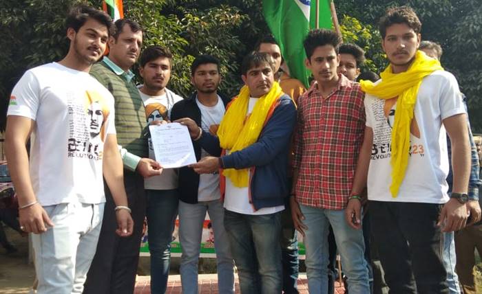 करनाल। शहीद ए आजम भगत सिंह के अपमान से गुुस्साए शहीद भगत सिंह ब्रिगेड के सदस्यों ने रोष प्रदर्शन किया। जिला सचिवालय के बाहर जम्मू विश्वविद्यालय के राजनीति विज्ञान विभाग के प्रोफेसर मोहम्मद ताजुदीन का पुतला फूंका गया। मोहम्मद ताजुदीन ने शहीद भगत सिंह के प्रति गलत शब्दों का प्रयोग कर उन्हें अपमानित करने काम किया था।