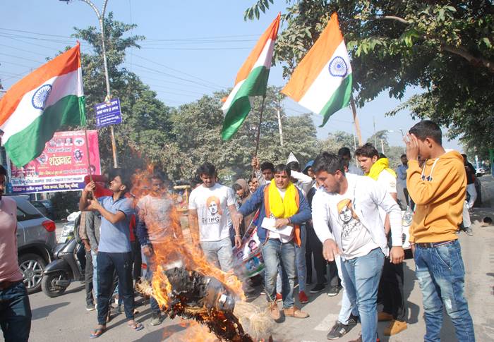 ताजुदीन को विश्वविद्यालय से बाहर किया जाए और उनके खिलाफ देशद्रोह का मामला दर्ज हो। सरकार ने कार्रवाई नहीं की तो बड़ा आंदोलन किया जाएगा। इस अवसर पर ब्रिगेड के डीएवी कालेज के प्रधान अमन सिंह देसवाल, खालसा कालेज प्रधान मंदीप सिंह संधू, अमरजीत पूनिया, अंकित संधू, रोबिन संधू, आकाश, लवकेश, बृजेश संधू, रोहित संधू, सुमित संधू, अंकित संधू, अमन शर्मा, विशाल शामगढ़, सतीश कांबोज, विजय अरोड़ा, शम्मी कालरम, श्रीपाल हवाल, राकेश लोहान, साहिल कल्याण, राकेश मेहरा, मनोज कांबोज, रजत, पीयूष, शिव सहित बड़ी संख्या में युवा मौजूद रहे।