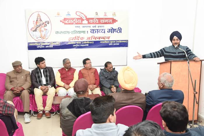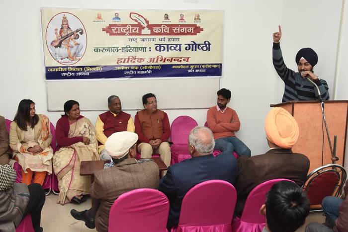 23 दिसम्बर 2018 को करनाल में राष्ट्रीय कवि संगम की ओर से काव्यगोष्ठी का आयोजन किया गया, जिसमे मुख्यातिथि के रूप में राष्ट्रीय कवि संगम के राष्ट्रीय अध्यक्ष जगदीश मित्तल , प्रांतीय अध्यक्ष मनमोहन गुप्ता उपस्थित रहे, काव्यगोष्ठी में जयदीप सिंह तुली के अथक प्रयासों से लगभग 20 कवियों ने भाग लिया.