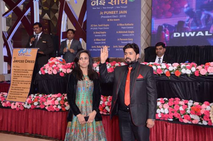 करनाल : जेसीआई करनाल सिटी की तीसरा शपथ ग्रहण समारोह होटल विवान में सम्पन हुआ। जिसमे पुनीत जैन को प्रधान नियुक्त किया गया। इस कार्यक्रम में मुख्य अतिथि राजीव मेहता कमिश्नर नगर निगम करनाल रहे। इस अवसर पर इंस्टालेशन अफसर जे सी प्रशांत सिंगला व् इंडक्शन अफसर जे सी सुनील माटा ने नव-नियुक्त प्रधान पुनीत जैन और उनकी टीम को शपथ दिलवाई। इस अवसर पर छोटे बच्चो ने गणेश वंदना से कार्यकर्म की शुरुआत की।