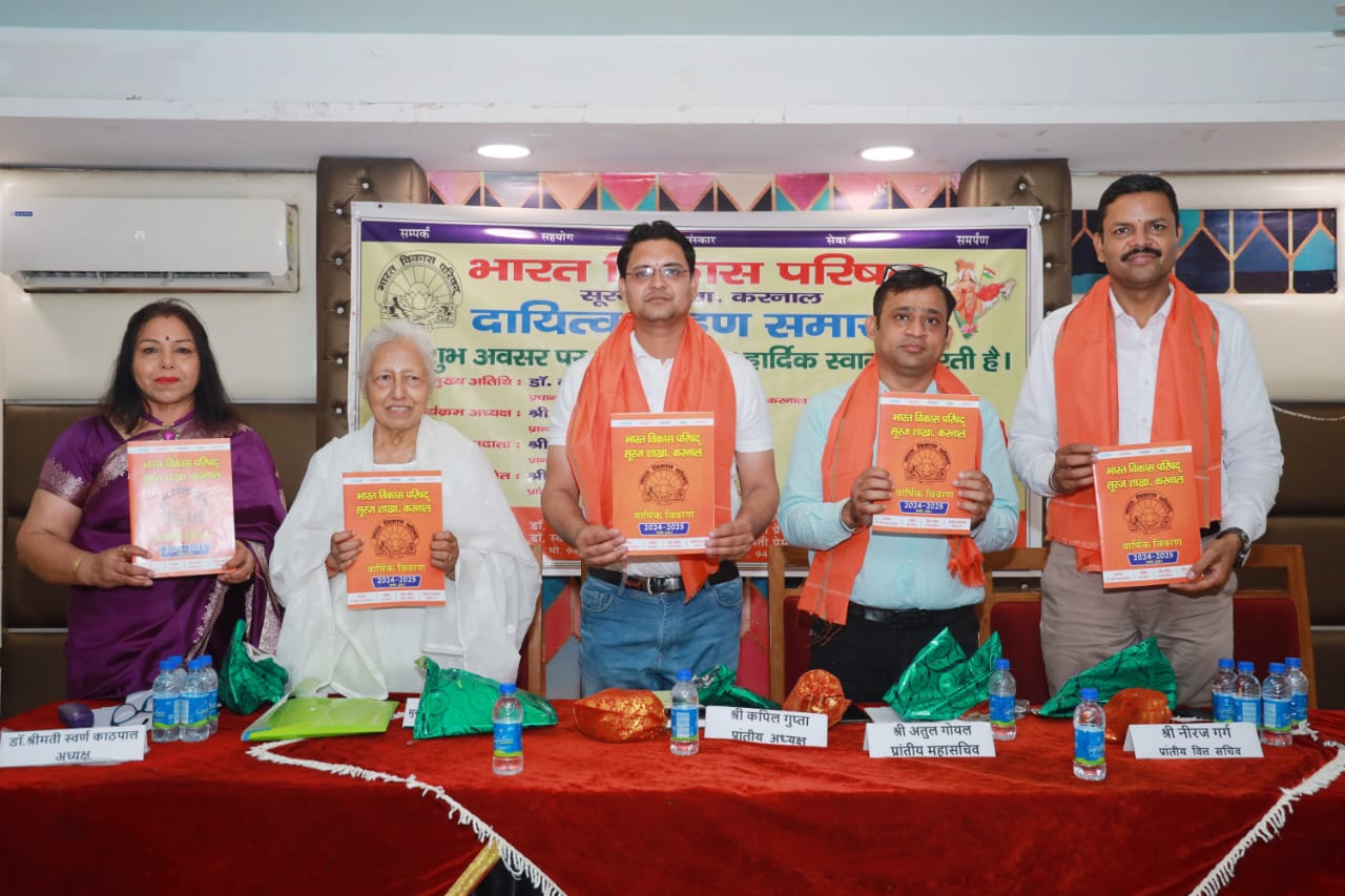 कार्यक्रम की अध्यक्षता हरियाणा उत्तर प्रांत के प्रांतीय अध्यक्ष श्री कपिल गुप्ता ने की। प्रांतीय महासचिव श्री अतुल गोयल ने दायित्व प्रदाता की भूमिका निभाई, जबकि प्रांतीय वित्त सचिव श्री नीरज गर्ग विशेष अतिथि के रूप में उपस्थित रहे। समारोह का शुभारंभ दीप प्रज्वलन और ‘वन्दे मातरम्’ के गायन के साथ हुआ। सूरज शाखा की सचिव श्रीमती प्रेम मैहता ने मंच संचालन की जिम्मेदारी संभाली।